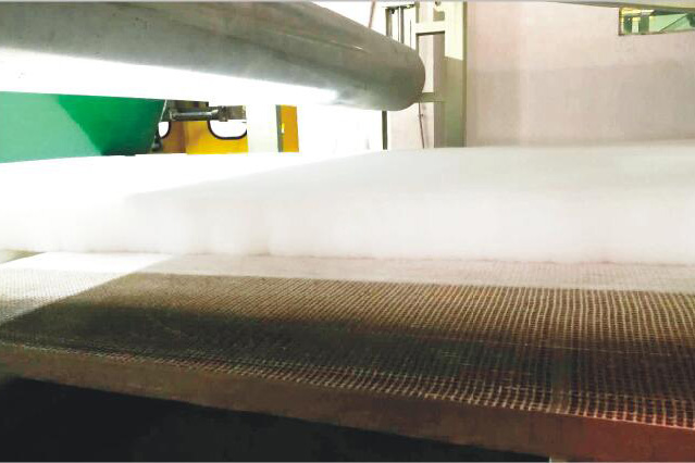 從產(chǎn)品的縱向側(cè)面觀察,纖維網(wǎng)的立體蜂窩狀結(jié)構(gòu)使材料獲得最大的彈性和抗壓性,在長(zhǎng)期或反復(fù)承載后仍保持了良好的回彈性能。